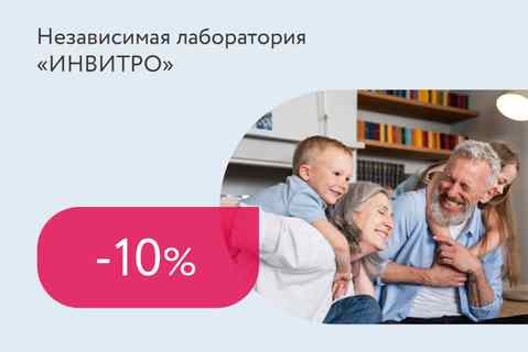 В лаборатории «ИНВИТРО» регулярно действуют приятные акции для пациентов, а также предусмотрена программа лояльности «Здоровый кэшбэк». Программа позволяет выбирать услуги, за которые начисляются повышенные бонусы. Сразу после первого заказа пациент получает 3% от суммы заказа на бонусный счет. Накопленные бонусы могут составлять до 30% от суммы следующего заказа.